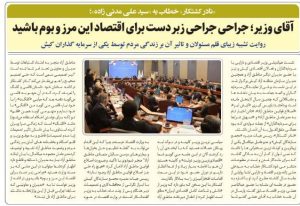 شما میتوانید در این مدتی که بر مسند وزارت هستید «جراحی زبر دست برای اقتصاد این مرز و بوم» باشید