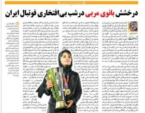 محمدعلی وزیری/بانو مرضیه جعفری- سرمربی تیم ملی فوتسال ایران- به افتخار بهترین مربی فوتسال زنان آسیا نائل آمد. درکنارسربلندی وشادمانی این افتخار باز بغض مکررحسرت گلویمان را فشرد که یک ایرانی برجسته (علیرضا فغانی) از استرالیا بهترین داور آسیا شد زیرا پخمگان جایی برای نخبگان نگذاشتند وننمی دانند نخبه چون هواست که در محدوده دیوار […]