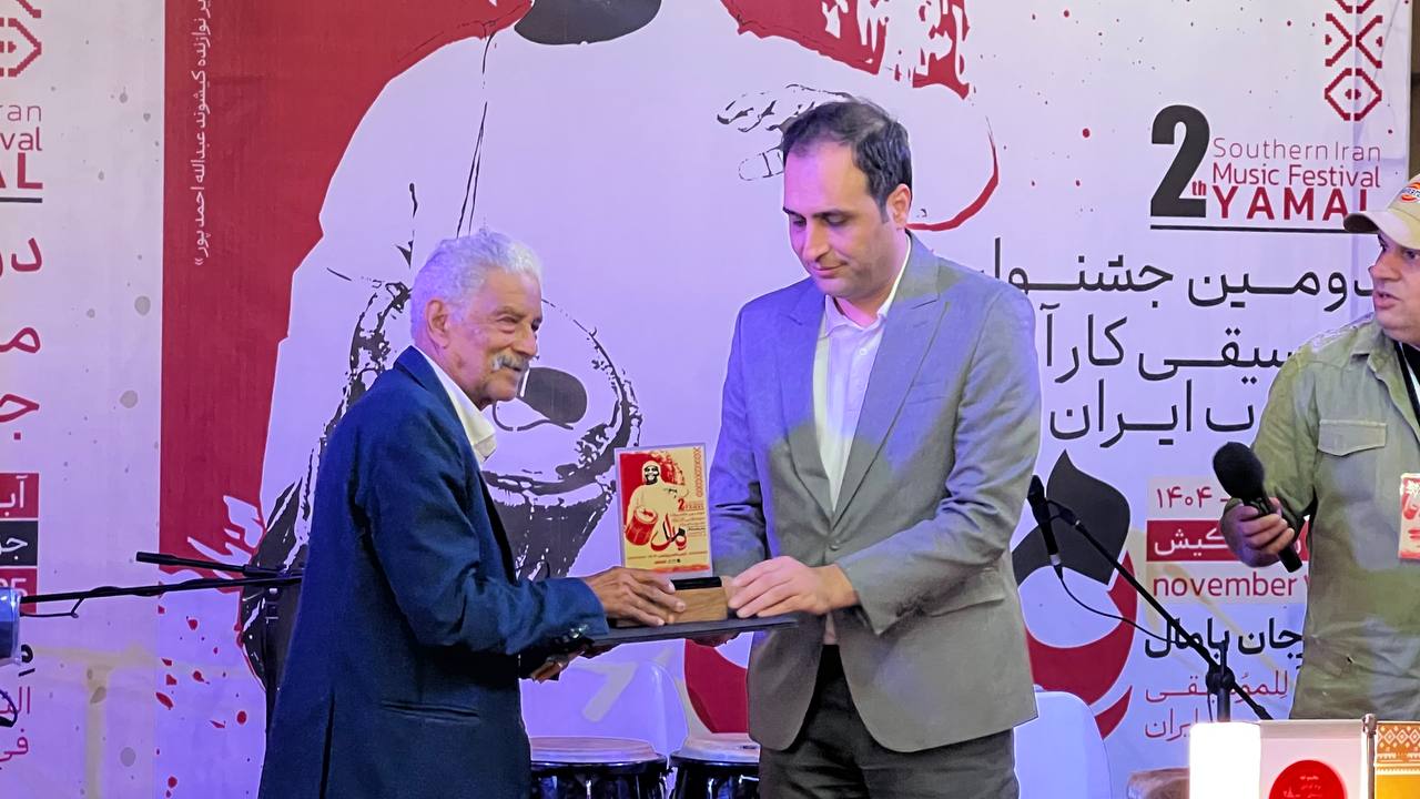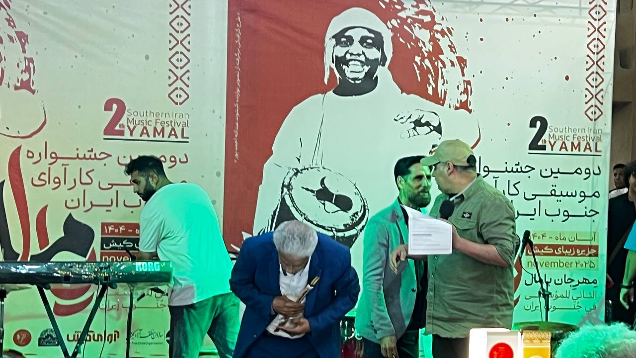 سپس با همت “بابک عامل”دبیر جشنواره موسیقی کار و آیینهای جنوب ایران “یامال” از استاد ‘قنبر راستگو’ معروف به خالو قنبر از مفاخر موسيقي هرمزگان و از بزرگترين اساتيد موسيقي مقامي در كشور دعوت شد؛ تا توسط “علی حسنلو”معاون گردشگری سازمان و “جمشیدی” مشاور مدير عامل سازمان و نیز “سعید یکه دهقان” مدیریت بازاریابی و تبلیغات گردشگری با اهدا لوح تقدیر و تنديس جشنواره مورد تقدیر قرار گیرد.